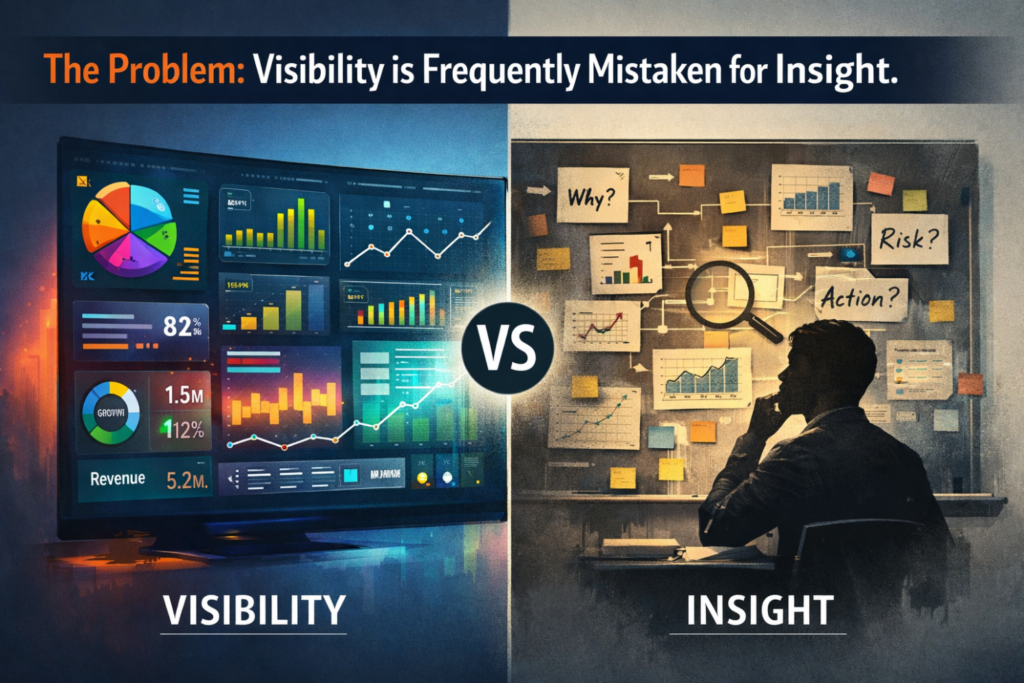Most organizations invest in dashboards to gain “visibility.” The intention is sound. Leaders want a consolidated, real-time view of performance across revenue, margins, working capital, pipeline and operations.