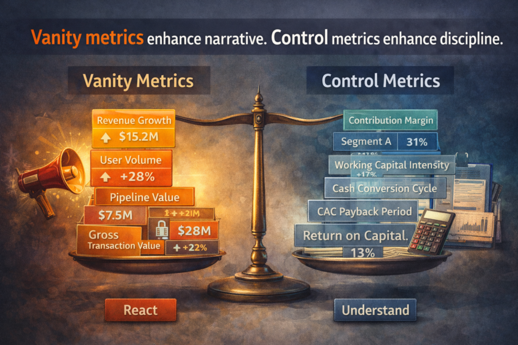 Vanity metrics enhance narrative. Control metrics enhance discipline.