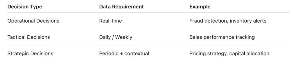 Inside most organizations, decisions happen across multiple layers. Yet the data infrastructure is often designed as if every decision requires the same level of immediacy.