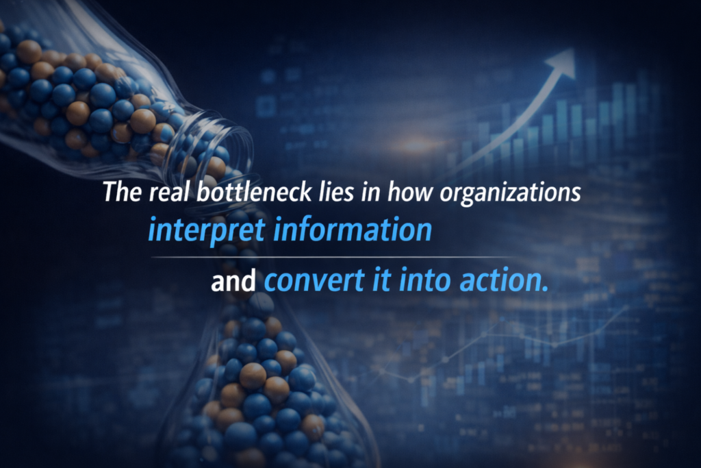The real bottleneck lies in how organizations interpret information and convert it into action.