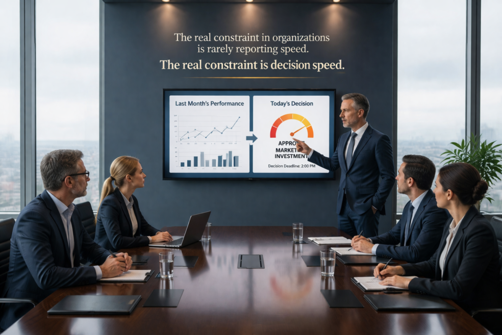 The real constraint in organizations is rarely reporting speed. The real constraint is decision speed.